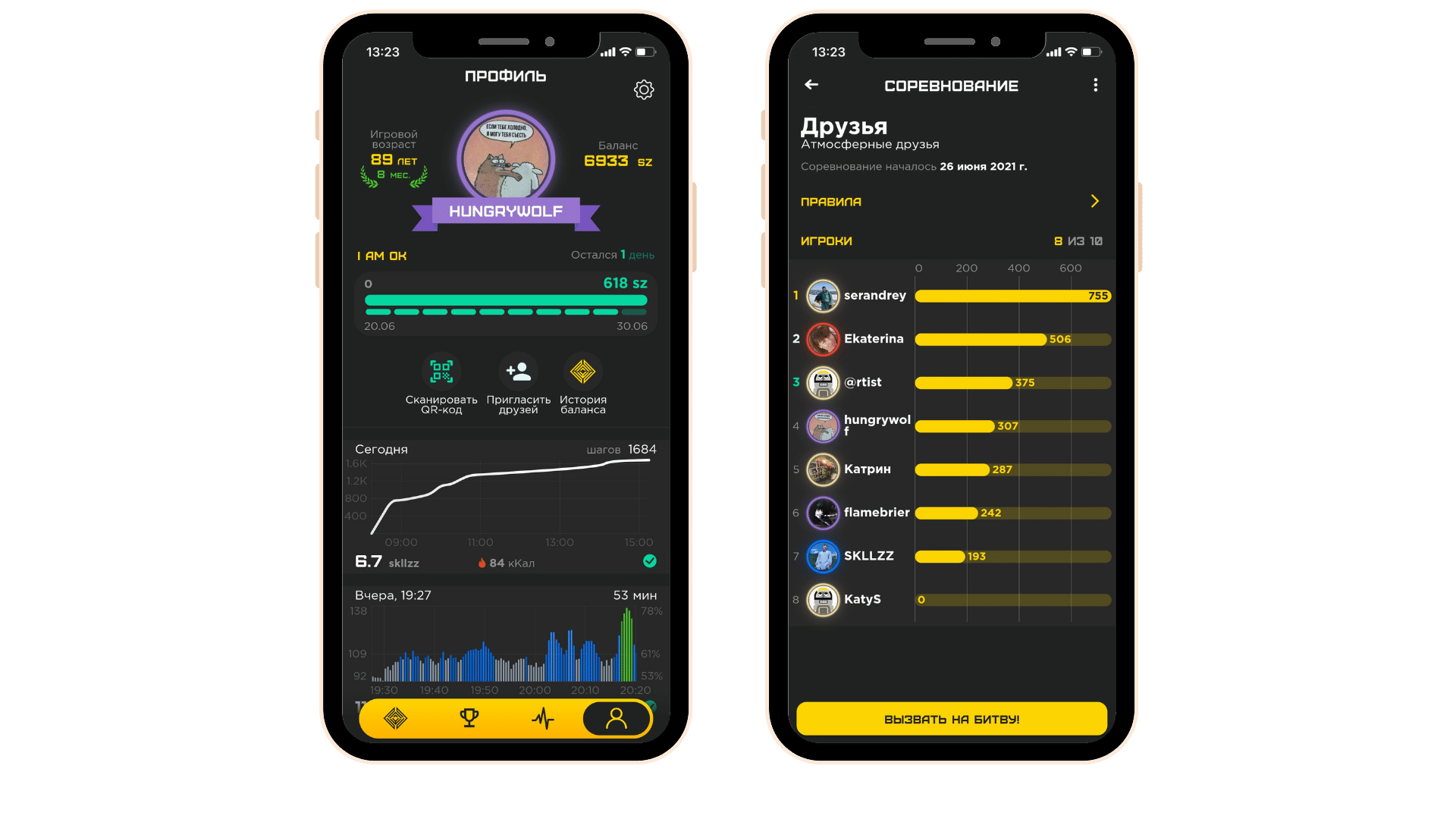 - настраиваемая адаптация клиента - обязательная норма активности - customer journey map - контроль за физической актиностью - подключения часов и трекеров (apple, garmin, miband и др.)